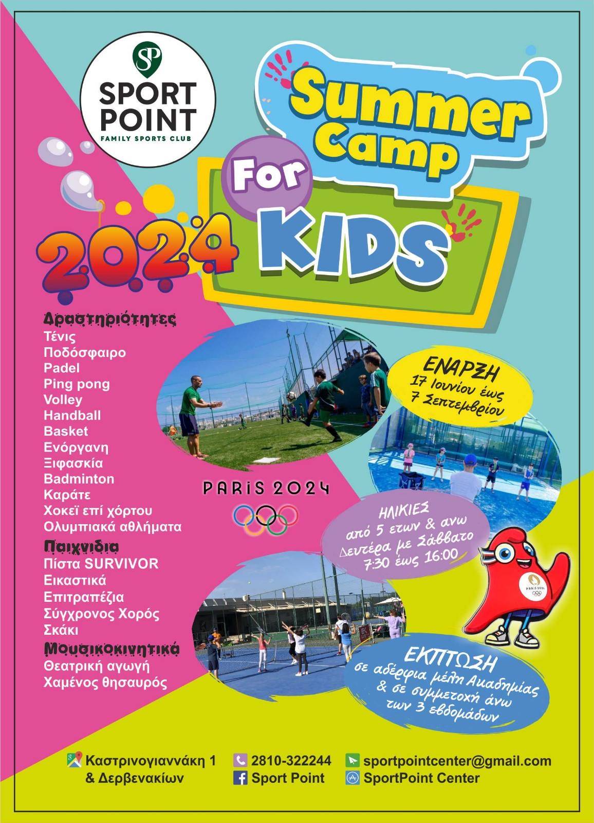 Είμαστε στη διάθεση σας για οποιαδήποτε απορία ή διευκρίνιση αλλά και για τις εγγραφές των παιδιών σας στο 2810 322244 και στο sportpointcenter@gmail.com